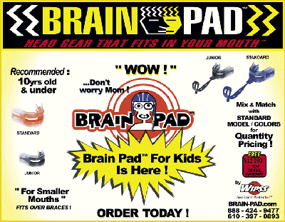 Brain-Pad, Inc. - Develops, markets and retains numerous patents on its impact protective mouth-guard lines, along with it's patented impact protective head and wrist bands, all under the Brain-Pad brand name. Since 1997, Brain-Pad mouth guards have been among the most dominant brands in the mouth guard industry and the mouth guard of choice for serious competitors around the world.