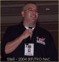 Mr. Stell started his Martial Arts training in 1975 at the age of 9. Along with being the Head of Officials for the IKF and a Representative, Referee and Judge for the ISCF, he is also an Official Referee and Judge for the California State Athletic Commission. When we don't see him in the ring as head Referee for a Kickboxing bout he is in the ring as Referee for Pro Boxing on broadcast on HBO, Showtime, ESPN, Fox Sports, PPV, Telemundo and other Networks. Mr. Stell is also a Judge for both Pro and Amateur Kickboxing and Boxing. he is also a member of the State of California Martial Arts Board. One thing that sets him apart from other officials is that he not only controls the sport as an official but he has "Walked the Walk" himself. He was a 4 time Kickboxing Champion (Before the IKF was founded) and is a a (Professor) 9th Degree Black Belt in the Kajukenbo System. As a Kickboxer, he won all but 2 of his bouts by KO or TKO and in doing so earned his nickname, "Bam Bam!" Mr. Stell is no stranger to other Martial Arts competition either. Before his amateur and professional career as a kickboxer he won over 100 point karate tournaments. However his biggest accomplishment to the IKF was his work in co-founding the organization with current IKF President Steve Fossum in June of 1992. The first IKF event was promoted in August that same summer and featured several of Stell's Kickboxing students who would later become some of the first IKF Champions. Stell was the person who design the first IKF logo/crest which was similar to the second version of it which is shown below. Many in the IKF have seen the IKF Crest change several times over the years. Both Stell and Fossum created the foundation of the IKF from their knowledge and experience as past Kickboxers (Over 100 bouts between them and multiple titles), Trainers of Champions and Kickboxing Event Promoters. In July, of 1996, Stell stepped down as IKF Vice President to pursue other desires. One of them was to step back into the fighting ring again. During this time he fought 2 more kickboxing bouts before officially retiring as a fighter and returning to the IKF in 1998 as Head of Officials. To read all of the IKF History Click HERE. Stell's work with the IKF has taken him all over North America as well as around the world to places such as China, Holland, Germany, and Malaysia. As a referee he has shared the ring with some of the Greatest fighters ever such as Don "The Dragon" Wilson, Rick "The Jet" Roufus, Stan "The Man" Longinidis, Wanderlei Silva, Chris Weidman, Ken Shamrock, Cung Le, Rudi Ott, Paul Biafore, Dave Marinoble, Carter Williams, Eric Regan, Kathy "The Punnisher" Long, Stephen "Wonderboy" Thompson, Ramona Gatto, Alex Gong, Enn Fairtex, Shoni Carter, Matee Jedeepitak, Danny "Hard As" Steele, Tommy Bach, Danny Hoyer, Fernando Calleros, Anthony "Powerhouse" Bartinelli, Bao Ligao, Mike Nevitt, Mark "The Hammer" Selbee, Raoul Doucet, Juan "The Ghost Warrior" Torres, Ivan Silva, Francis "Footloose" Farley, Curtis Schuster, Tommy "The Terminator" Kimber, Trent "Thunderfoot" Tompkins, Randy "The Taz" Bussart, Duane "Bang" Ludwig, Trisha "TNT" Hill, Toney "The Hammer" Hannon, Boyd "The Bounty Hunter" Murphy, Saeksan (Saekson) Saengchan Janjura (Janjira), George Tsutsui, Mike "Magicman" Dougherty, Jean-Claude Leuyer, Dan Rawlings, Angela Rivera (Parr), and of course, many Pro boxing Champions such as Andre Ward, Robert "The Ghost" Guerrero, Montel Griffin, Hector Camacho Jr. Mia St. John, Jessica Rokoski, Jennifer Alcorn, Livingstone Bramble, Paul Nava, Willie Jorrin, Juan Lascano, Michael Simms, Larry Johnson, Montel Griffin, Hector Camacho Jr. Mia St. John, Jessica Rokoski, Jennifer Alcorn, Livingstone Bramble, Paul Nava, Willie Jorrin, Juan Lascano, Michael Simms, Larry Johnson and MANY MORE... |