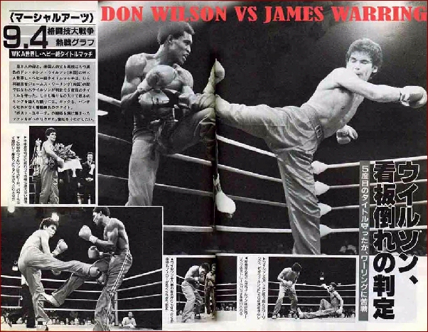 On May 15th, 1999 in Lowell, Massachusetts, USA at 45 years of age, 11 Time Kickboxing WORLD Champion Don "The Dragon" Wilson stepped back into the ring to fight for the vacant IKF Pro FCR Cruiserweight World Title against Dick Kimber for what is still this day, the highest kickboxing purse ever paid, $150,000.00 and some additional training expenses. Kimber swore to everyone that he'd have the fight over before the fifth round. However when the Dragon unloaded on Kimber in round three, Kimber dropped to the mat and referee Dan Stell counted him out on the floor. Kimber never stood during the count and to this date, Kimber never fought again. Having never been challenged for his title, Wilson voluntarily retired it several years later. | ||