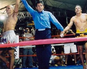 Some of you might remember the IKF Mexico National Title Event on October 6th 2001 in Puerta Vallarta, Jalisco, Mexico. It featured 2 Great Mexican fighters, fighting for the vacant IKF Pro Super Middleweight MuayThai Rules Mexico National Title. Adolfo Lozano of Puerta Vallarta, Jalisco, Mexico against Enrique Cuellar of Aguascalientes St., Mexico. After 4 rounds, Cuellar was well ahead and on his way to the title leading 39-36, 38-36 and 40-38. However, Lozano had come out in round 5 almost as if he was just starting the fight fresh. Somehow he had found additional energy from the crowd. Although noticeably tired, his punches regained some snap and power and his legs were hitting with speed and power once again. More importantly, the one strike that won him rounds 1 and 2 so easily was back with incredible accuracy, his knee strikes. Over and over again Lozano landed knees on Cuellar who was still strong with his own knees and hands. Then as the 2 came to a clinch, Lozano, out of nowhere, EXPLODED with energy and opened up a non stop attack on Cuellar. Starting with kicks and punches and moving into the clinch, Lozano backed away and let loose with several strong knees that hit Cuellar in the body and finally the ending 2 had direct hits on their target, Cuellar's face. As the 3rd strike ended and Cuellar's head pulled back, blood shot from his nose forcing referee Ubillado Vega to step in. A wise move as it was clear, Lozano was on a roll and had no plans of stopping his attack. Upon closer look, Vego saw the tremendous blood flow from Cuellar's nose and immediately stopped the bout. The ringside doctor later said if Vega didn't stop it, he would of since it seemed to take him a long time to stop the blood flow after the bout was over. In the end, Lozano won the title by TKO at 2:05 of the scheduled 3 minute round when Mexico City Referee Ubillado Vega stopped the bout. It was a surprise win for everyone, especially the two Great Fighters. However, there was much more leading up to this event and a lot more after it that shocked us all. As we all know, there are sanctioning bodies around every corner. Many claim to be helping the sport while others simply drag it down. Well, sadly to say, of all the terrible, unethical and unprofessional things we've reported on in the past done by the more visible organizations like the WKA, ISKA, WAKO and some others, they seem squeaky clean as compared to the 1 organization that has controlled all of kickboxing in the country of Mexico over the last several years. The organization is headed up by a man named Enrique Flores (Right, Asociación Karate Studio). However, Flores doesn't just run a kickboxing organization where he appoints his own Champions. He also promotes most of the Championship Events and worse yet, he "Controls" most of the fighters of Mexico. In the last 2 years, the world has been able to see or hear about some of Mexico's best fighters through the IKF. Actually, we should say through the great work of IKF Mexico Representative Douglas Dickey and his Mexico associate, Miguel Reyes. Working together from events such as the successful IKF/Mexico Border League events to assisting promoters in making the IKF the first Worldwide Kickboxing Sanctioning Body to sanction a kickboxing World Title in Mexico. On the event, Mexico got it's first real Kickboxing World Champion, Ivan Silva. Silva of Tijauana, Baja Ca, Mexico won the IKF Pro International Rules World Welterweight Title on December 15th, 1997 in Tijuana Mexico with a first round KO Over Dave Horvath of Winnipeg, Manitoba Canada. After his win, he became known around the World through the IKF. Silva's trainer (Reyes) was forced to retire his title on June 22nd, 1999 after Silva suffered a potentially career ending hand injury while training to defend his title against Danny Steele in Hawaii. However, before his retirement, he had to hear how Flores and others had nothing but negative things to say about him trying in every way to downgrade his great accomplishment. Mexico's own Champion being trashed by someone who has always "Claimed" to be the leader of kickboxing in their country. What a shame. However Silva wasn't the only one to be trash talked by Flores. Next came some Mexico Super Heavyweight fighters. They included current IKF MuayThai Rules Super Heavyweight Mexico Champion Pedro Fernandez of Tijuana, Mexico. Fernandez, also trained and managed by Reyes and Dickey was trashed by Flores for even leaving Mexico at all to fight in the North American K-1 event. His poor showing against eventual Champion and kickboxing Superstar Rick Roufus was the focus of Flores attack on his skill and talent as a Professional fighter. Keep in mind that this was Fernandez' "FIRST" Pro fight. On of all shows, "K-1!" We'd like to see how Flores' would do against a fighter like Roufus in a chicken pen, let alone in an event with the exposure of K-1! Next came Super Heavyweight Raul Romerz Gonzalez of Mexico City, Mexico. No one knew who Gonzalez was until he became registered into the IKF World Rankings. Still, he wasn't known by many until he was offered a shot at the vacant IKF MuayThai Rules Super Heavyweight Mexico National Title against Fernandez. Gonzalez use to be managed by Flores so when Flores heard he got the title shot without his help, he turned on Gonzalez claiming he was a washed up fighter who was no good without him in his corner. After Gonzalez lost to Fernandez, it just gave Flores more to work with as he trashed him even more sending out e-mails to everyone in the Mexican kickboxing community warning them that if they leave him (Flores and his organization), this is what will happen. Stay with him and they will win. However Gonzalez, like the others wanted to expand their competition and Flores never really offered him and many of the others any great competition. It was a simple reason why. Although there were other good Super Heavyweights in Mexico that were not controlle