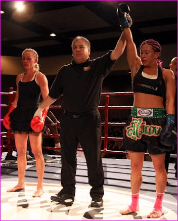 California, USA when she defeated Gina Reyes by TKO when Reyes corner stopped