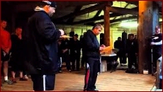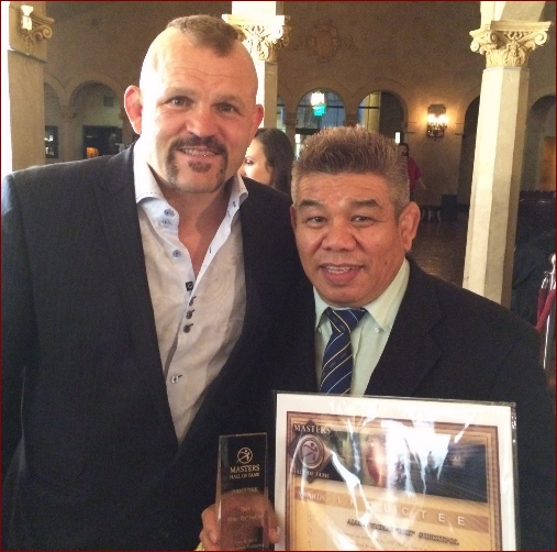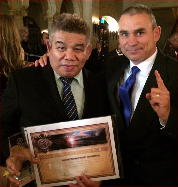 Bryan Dobler (L) and Ajarn Rex on Ajarn's way to the Masters Hall of