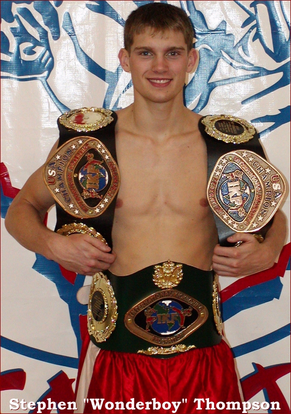 CRUISERWEIGHT CHAMPION BOUT 7 They call Thompson "The Wonderboy" and well, you just have to see him face to face to know why they dare to call him "Boy" but after you see him fight, you'll see where the word "Wonder" came from. Thompson was this years 2002 IKF USA National Light Heavyweight champion and had registered for this event in the light heavyweight. However, his only challenger was the same person he beat in 44 seconds of round 1 to defend his Nationals Title (A title that he's held for 3 years in a row) this year, John Scanlon. No offense to Scanlon but Thompson knew he wanted to be challenged more so he moved up to Jardine's weight bracket and Scanlon followed him. As mentioned, above, Thompson had to face Scanlon in a prelim bout and defeat him again before moving on to face Jardin, which he did. For Jardine, at this years 2002 IKF USA Nationals he first defeated Scott Christopher of Cudaley, WI by unanimous decision, 30-25, 30-26 & 29-25. In his championship bout he defeated Jason Ross of Southaven, Mississippi by unanimous decision 30-27 on all 3 judges cards to win the National title. When the bell rang, the two went to work and Jardine saw a different level of competition then he had ever seen before. Although he has a champions skill, Jardine encountered something usually seen by opponents of pro IKF Heavyweight Champion Dennis Alexio. When your on the ropes and Thompson starts a combination, he doesn't quit until you either move, throw a successful counter or, as happened in this fight, have a referee like Dan Stell step in to give you a deserved 8 count. Although he was strong in round 1, Jardine had no answer to Thompson's non stop punch and kick attack in rounds 2 and 3 forcing referee Stell to give him standing 8 counts in both rounds. Still game with heart to match, Jardine had no plans of stopping early as he entered round 4 with his eyes wide open. However Thompson just gets stronger the longer he fights and by now he was just warming up. He was too much for Jardine who fought like a warrior, but this night belonged to Thompson as referee Dan Stell stopped this one at 1:26 of the 4th round giving Thompson the title and Jardine his first loss. |
