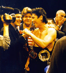 In this writing, I feel this is a good time to make a public apology for the "Way TOOOOO Long" meeting Friday night. I can't speak for others but for me, I was just excited to be able to address all of the trainers, coaches, fighters, officials and associates of the event all at once. Last year I wasn't able to do this because we had a last second insurance issue that had to be delt with before 5 PM California time. A situation that was avoided this year by our new "Official IKF Event Insurance Provider, F. L. Dean and Associates. We'll have a full story on our partnership with them and IKF event insurance later on this news page. Going back to the long winded meeting... As for me, I wanted to take some time to make clear to everyone at this years event, know how "Important" they "ALL" were. It was my way to address all those in attendance to show my personal appreciation for their participation and my personal pride in those willing to "Walk The Walk and Bring It ON!" Someone told me over the weekend, "Thanks for building the stage so we could be the stars." The comment touched me greatly, but I also realized that although I played a part in the directing that stage, the stage of the USA Nationals is built every year by everyone that was there, not Steve Fossum. This event's success has ALWAYS been a TOTAL TEAM EFFORT! There were son many things I wanted to say Friday night, it's obvious I got carried away and again, I'd like to apologize for my long winded speech. It was inconsiderate of me not to think of all the fighters who only wanted to go back to their hotel rooms and rest. One thing to say though, as always, this will be improved for next years event. I will personally promise you all that next year, we will all be "VERY" Brief and get to the points of necessity for the weekend. Another thing that was brought to our attention was the choice of food locally. I was told Sunday night that no one had ever received the welcome packages the Quad Cities Visitors Center was suppose to hand out to everyone. If I would have been told sooner about this I would have personally taken care of this need for everyone visiting the Quad Cities for the National Tournament. There are a lot of great restaurants and other things close by that none of you ever knew about which was bad for you as well as the many local businesses in the area. Businesses such as local restaurants, sporting goods stores, movie theatres and other locations lost out on a sure visit from many of you. Because of the issue with the food, we have come to the conclusion that next year we will have a full "Fighters Style" (Healthy food for fighters, but available to everyone) buffet set up for Friday afternoon and into the evening. This way, everyone can be eating while the Friday night meeting is taking place instead of sitting there being hungry. For next years meeting we will be sure to review the weekend tournament rules, regulations, itinerary, special activities and more within a 30 minute time slot... Please... Hold me to that guys.... The cost for the dinner will be between $5 and $10 which will be determined by the event center catering it. Adding to this, we will also make sure the venue concession stand next year will offer a more healthy choice of food. Healthy foods like sandwiches along with energy bars, drinks etc. will make it more convenient for fighters who are forced to stay at the venue between fights or stay with their team. This was something we never even thought about but was brought up by many after the event. The most important thing about next year is that it will be the "5 Year Anniversary" for the tournament (1999-2003) so we will be planning a lot of extra things for the entire weekend. Some of the suggestions have been to have a small Pro card on Saturday night with 1 or 2 World Title Bouts on it, a special Saturday movie night at a local theatre, a special dinner banquet and several other things. All I can say is expect a lot of additional things at next years tournament weekend. If your not fighting, the event itself will have a lot of surrounding activities with it. If we decide to feature another Sunday night event we will have only 10 bouts max. The Sunday night 16 bout line-up was exciting but simply went too long into the night. Many of you have been e-mailing and calling asking for pictures and videos so I'll give you that info here. For event pictures, you can either call IKF Photographer Glenn Berg at Foster Graphics at (530) 888-6082 or you can simply e-mail him (Which will be easier) at Glenber@msn.com. Be patient with a response since he has a lot of orders to fill from this years event. Some have asked about Video's of this years event as well. For these you can contact Emerald Motion Productions, Inc. at (309) 496-1509 or toll free at (866) 523-9033. Their website address is www.emeraldmotion.com. On their site you can download a PDF file for an order form. In addition, you can order either Video Tapes or DVD which we thought was a great addition for everyone. Adding to this, the Video Tapes or DVD's are broken into weight classes so you don't have to buy several videos just to get all your fights as in the past. With this layout you can purchase the entire set of 4 videos (The entire event) for only $80 or DVD's for $100.00. This is a GREAT DEAL! If you have trouble downloading the order form, just give the guys at Emerald Motion Productions a call and they'll be happy to mail or fax you order forms. Next, some of you have been asking about purchasing duplicate National Championship Belts. As noted at the Sunday night event these are $200.00 each and a shipping fee of $15 each. Of the 7 we had left we only have 1 remaining. Three went to the Coopers crew out of Detroit Michigan for their 3 Champions on Sunday night and the others sold today to Diversified Martial Arts in Twin Falls Idaho to their 3 National Champions. Our trip back from the Nationals this year took us through Divers