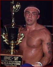 There's no question the upcoming K-1 Middleweight North American qualifying tournament has some top talent in it. All 4 of the fighters in it have either won or hold top titles in the IKF. The Tournament will be a part of IKF. Promoter Sven Bean's (Right) "Ring Of Fire 4" on Friday, March 15, 2002 at the Radisson Graystone Castle in Denver Colorado, USA. Here's a look at the challengers for the K-1 North America Middleweight crown. The Middleweight tournament will include Ole Laursen of San Diago, CA, USA via Copenhagen, Denmark. Laursen is currently ranked number 1 in the IKF Pro MuayThai Rules Middleweight division. His Pro record is 7 wins, 4 loses with 3 wins by KO. He is the current IKF Pro MuayThai Rules European Middleweight Champion. He's been fighting professionally for only three years but has quickly moved to the top. He's traveled, trained, and fought all over the world refining and perfecting his unmatchable technique and power. He was born in 1977 in the Philippines to a Danish father and Filipino mother, and raised in Denmark by his mother. His brother Christian Laursen was a Danish and Scandinavian professional MuayThai champion. Christian encouraged him at the age of 15 to begin training in MuayThai but Ole didn't study it seriously until joining the army at the age of 18. The turning point for him came when he defeated the Danish amateur champ by knockout. This event caused him to devote himself to MuayThai in hopes of becoming the best fighter in the world. Ole continued fighting as an amateur along with his brother for only one year, both brothers winning all fights by knockouts. He then moved to Thailand to train and turn professional. As a professional, he trained under Sam Lung who Ole credits with giving him the tools to be a disciplined MuayThai fighter. In 2000, he won the IKF Pro European Middleweight title over Eval Denton (Pictured at Right, L-R: Eval, IKF European Director Alby Bimpson & Ole) from England, in England by split decision. Next in the mix is Duane "BANG" Ludwig of Aurora, Colorado, USA. Ludwig has been known to the IKF for quite sometime now. As a Pro, he's currently ranked number 2 behind Laursen in the IKF Middleweight MuayThai Division. He has a Pro record of 7 wins with only 1 loss and an amateur record of 12 wins, 2 loses with 8 wins coming by KO or TKO. Our first view of Ludwig was on June 5th, 1999 in Orlando Florida, USA when he suffered 1 of his only 3 career loses in kickboxing/MuayThai. In Orlando, Ludwig met Tony Haddockof Orlando Florida to fight for the International Rules (Leg kicks, no knees) Light Middleweight U. S. Amateur Title. In round 2 of that bout, Haddock unloaded a blistering left hook that quickly dropped Ludwig to the canvas. Ludwig stood up as IKF Referee Dan Stell started the count but once up, he fell back into the ropes and it was obvious he was not able to continue. Stell stopped the championship bout at :51 seconds into the second round. At the time, Ludwig made it clear he only wanted to fight MuayThai Rules bouts. Why? The "ONLY" 2 bouts Ludwig lost as an Amateur were International Rules bouts. (Leg kicks, no knees) Ludwig's only other loss came in Calgary Alberta Canada to Trevor Desjarlais. Proving this in true form, in August of 1999 he redeemed himself as expected in a MuayThai Rules Championship bout when he captured the vacant IKF United States Super Middleweight Amateur Muay Thai Title with a unanimous decision win over Terrace James of Albq. New Mexico, 50-46, 50-46 & 50-45. He went on a month later to be one of the first ever IKF USA National Amateur "Tournament" Champions at the very first IKF USA National Championships in September of 1999 where he won the Light Middleweight MuayThai Rules U.S. Title. Ludwig's only other loss in his Kickboxing career was against seasoned Pro MuayThai fighter and ISKA World Champion, Alex Gong as an undercard on the K-1 Event in Las Vegas last year. The bout was for Gong's Title and if not for the half point scoring system, Ludwig may have pulled off a major upset. Ludwig has since made it clear he wanted a rematch with Gong for his World Title, but from what we've been told, no rematch has been offered. Befor Gong Ludwig had pro wins over Terrace James again, Steven Berkolyko, Sean Himes, then Bryan Poejoy, another fighter then Gong. After gong he defeated a fighter from France, on the Warriors Cup 3 show. As of today, his pro record stands at 8 wins and 1 loss. Ludwig also has a lot of experience in MMA/NHB with a record of 11 wins and 2 loses. He turned down an offer from the UFC to take the K-1 fight as well since it is his DREAM. So what's stopping Ludwig from fighting for the IKF MuayThai Rules Middleweight World Title? The same thing that's stopping everyone else... A fighter by the name of Kongnapa, who was not allowed to compete in the North American K-1 Middleweight event because he's a Thai. Kind of a shame he and others aren't allowed to compete. Ludwig would have been happy to meet Gong in the tournament, but he didn't want to be in it. So instead of a Ludwig Vs Gong fight or Ludwig Vs Kongnapa possibility, Ludwig will make the better financial decision in his career, to put aside a shot at a "World" title and go for the money in the Tournament. Not just any tournament though, he hopes to make it all the way to Japan for the Big Show! If he wins it all in, he gets a check for $100,000, and we all know, it would take a lot of World Title bouts to come anywhere close to that kind of cash. Next in line is IKF number 3 ranked Pro MuayThai Middleweight fighter and former IKF Pro MuayThai Middleweight World Champion, Robert Coquette of Winnipeg, Manitoba, Canada. Coquete and Laursen (Above) have something in common, they have both beaten Eval Denton of England for an IKF title. Coquete won his IKF Title by unanimous decision over Eval Denton of England, 48-47, 49-46 & 48-47 in Winnipeg, Matitoba Canada on February 12th, 2000. There's a little confusion as to w