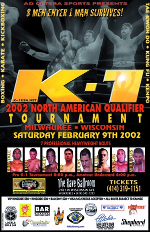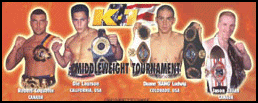 Since none of the K-1 Tournaments are sanctioned by a sanctioning body, K-1 will take the stage after the IKF Undercard event. Lights Camera... Action and hopefully a lot of "BANG" will open the first ever K-1 North American Qualifier Tournament. K-1 North America Representative Scott Coker will be on hand to Represent the K-1 Organization along with event Promoters Joffe and Roufus. Once the word is given, it will be time to... | ||||