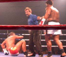 The winner of the Hasley - Regnier bout will face the winner of match 2 in Bracket A. Andre "The Silencer" Walker is 27 years old and stands 5' 11" tall weighing in at 230 lbs. He brings one of the best records to the ring Saturday night with 16 wins, 1 loss with 11 wins by KO/TKO. He trains at 3D Martial Arts in Denver, Colorado, USA and is a 5-Time Toughman Champion. Walker's already been to the Really Big Show once at the August K-1 North America Event. As an amateur he fought on the undercard in a less than impressive performance against Carter Williams. We say less than impressive because both were terribly winded by the 3rd round and if not for sure toughness, Walker could have met the same fate Williams did. In round 1 Walker dropped Williams during a "Slugfest" exchange with a strong shot forcing the referee to give Williams a standing 8 count. After the 8 count, Williams sat in the corner covering up until the bell ended the round. This could have easily been over in round 1 due to Carter's lack of response to Walker's punches. In round 2, Williams came out and pounded Walker with several strong head blows until he tired out again. Tired as well, Walker pressed back at Williams forcing him into the corner and without taking any blows, Williams simply slid down and quit and referee Cecil Peoples waived the bout off. We're sure both learned a lot from that bout, especially Williams as you will read below. Walker will face Kelly "The Lion" Leo from Atlanta Georgia. Leo is 30 years old, stands 6' even and plans to weigh-in at 210 lbs. He comes to the ring with a record of 18 wins, 4 loses and 1 draw and trains at The Warehouse Gym. His bio says he was a 1999 South Eastern Heavyweight Champion. One thing against him though is his experience is all in the style of Full Contact, above the waist fighting. Unfortunately we haven't heard much about him since he's only been fighting in the South East USA. We'll see what he brings to the ring Saturday night. |