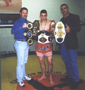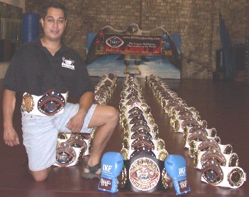 The time right now is about 10:25 PM and in about 3-4 hours from now, I will wake up from a quick power nap (of maybe 2 hours if I'm lucky) and start the long drive to the 2002 IKF USA National Amateur Kickboxing Championships by myself. Last year I had the pleasure of IKF Photographer Glenn Berg accompany me on the trip. However this year, he had to stay back here at homebase for the week until he can catch a flight with other IKF staff members on Thursday evening to arrive in Davenport on Friday morning. For some reason, I couldn't find anyone too excited about driving with me from here in California to Davenport Iowa, so I'll have plenty of time to think about what awaits me upon arrival as well as many of you next weekend. According to Yahoo Maps, the trip is 1,860 miles and estimated to take me 28 hours and 37 minutes before I knock on the front door of the Nationals Host hotel, The Radisson (Left) in Davenport, Iowa. However, for reasons I won't admit, I plan to make the trip a bit faster... Unless I run out of the Red Bull Johnny Davis and Frank Curtis stuffed into my icebox for the trip... So your probably wondering "Why would he be driving all that way... Can't he afford a plane ticket?" Well, for those of you who have been around the IKF since the 2000 USA Nationals event will remember why I now make the sacrifice to drive to this event every year. My buddy Johnny Davis will interject here and say, "Now Steve, don't get into those negative issues... just let it go.." OK Johnny, as per your advice, I'll just hit the headlines. Our Official shipping sponsor, UPS (United Parcel Service) "LOST" all the National Championship belts for the 2000 Nationals Event... and we didn't get them back until about 3 weeks after the event. Oh there's a lot more to this story, but as Johnny suggested... I'll stop there. There was nothing worse that year than seeing all those Champions walk away from the ring with a "BORROWED" IKF USA National Champions Belt knowing they had to give it back after a quick picture. All those Champions, young and old that fought their heart out that year and were sent home with just a promise that "We'll mail your belt to you..." What a crock of an explanation I thought... Here these amateurs traveled all this way, fought hard and won the National Title and now had nothing to carry home, let alone raise high above their head when they met those waiting for them at the airport or at the front door. If not for Brooks Mason taking some of the pictures we took of the belts before they left IKF Headquarters (Above right) and making some large prints of them at the local copy shop, I'm sure all those fighters would have thought something like, "Oh great... They couldn't afford belts this year..." It took these Champions nearly a month before we could get their belts to them as we waited for UPS to find them. "NEVER AGAIN!" I said. Never again will I not be able to see the joy on a Champions face as they carry their IKF Champions Belt proudly over their shoulder as they leave for home Monday morning. This event always costs us more than it will make as far as financial income. However, what we get in return is worth far more than the money we spend to make this event happen. Nothing can replace the smile on a fighters face when their hand is raised in victory. Nothing can replace the look of the fighter who fought hard but came up short, but still stood proud in the ring knowing he or she "Walked The Walk" against the BEST Amateur Fighters in the Nation on this weekend. I'd drive 3,000 miles to make sure these belts are there for those Champions on Sunday. I'll be tired, as always, but the adrenaline and excitement of everyone will energize myself and everyone there as if everyone's energy worked as one. On average over the last 3 USA Nationals Events, I get about 8 hours sleep from Thursday night to Sunday night. But the excitement of everyone there gives me more energy than I will experience throughout the year. It's the "Who's Who" of Amateur kickboxing in America. If I could afford their ticket, I love to bring IKF European Director Alby Bimpson and Jacqui here to see it. I'd bring Andre from Malaysia, Robert from Australia, Evgeny from Belarus, Alex from Japan, Oleg from Russia and a hosts of others. These guys have no idea what their missing. Someday they will be able to experience it and feel as excited as I do about it every year. Next weekend we will all be surrounded by some of the greatest trainers in the world as well as some of the greatest fighters in the world. Their presence humbles me beyond all means. "THEY" are the Champions on this weekend. I will be proud just to work hard and make things happen. The many officials and staff that will be volunteering their time to help, what can be said of them other than "THANK YOU!!" Without them, this event couldn't happen. OK, maybe I'm getting too emotional here, but if you've ever been to this event, you know what I'm talking about... This event will change your life in so many ways. The trainers who give their time, effort and knowledge to their fighters with no financial compensation in return. Their sacrifices they make is rewarded when their fighters proudly enter the ring of battle to "Walk The Walk!" Everyone this weekend will be surrounded by some of the greatest fighters in the world as well who will have their focus and attention on their own fighters instead, helping them achieve their dreams of becoming a True Kickboxing Champion like them. Some of them include IKF Pro Champions like World Champions Mike LaBree and Dave Marinoble, as well as US Champions Jim Zbilski and Kevin Hudson. But don't forget the other Pro Champions like Richard Trammell, Phil Nurse, Troy Dorsey, Scott Mincey, Johnny Davis, C.B. Bunkholt, Mick Doyle, Ray Thompson, Clerance Thatch, Pat Miletich, Horace Craft and the list goes on and on. While in their presence, I am humbled greatly by what they have accomplished in their lives. Th
