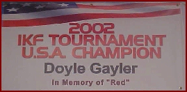 Shortly after Red had been laid to rest, the annual IKF USA National Amateur Tournament loomed about 6 weeks away. Doyle had decided to go and compete, although it would be the first time he had done so without his Dad in his corner. Best went on about Gayler, "I couldn't wait for the IKF 'family' to see Doyle fight. I knew he was something special, and I felt that the IKF USA National Amateur Tournament would be a premium stage for him to show his stuff". Doyle didn't disappoint at the 2002 IKF USA National Amateur Tournament winning the Light Welterweight FCR Title by handily KO-ing formerly unbeaten Omar Ballard in the 2nd round of the final. "We told Doyle right after that fight that his Daddy was watching, and his Daddy was smiling", said Best.