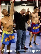 If we were not there, we may have thought this was reported with a typo but sure enough, this bout was for the "MAY" title! Matt May of Napma, Idaho, USA (9-2/5, 144, 5' 10", 20) shared the same name with his opponent, Marom "Whop" May of Salt Lake City, Utah, USA (4-4/1, 144, 5'6", 20) but that was about it. OK, well, their weights were the same too... OK, and their ages... but swear promise, that is it! These two had no desire to share anything else other than punches, kicks and knees in this special 4 round MuayThai bout. As if round 1 wasn't enough, Maron landed a right hand "SHOT" on Matt at the end of the round which was no flash knockdown. Matt took a moment to shake off the cob webs and finally stood to take his count. A trip to the corner for the round break and we saw a revitalized Matt May come out for round 2 which saw plenty of action. Round 3 seemed pretty even until Matt forced referee Lamanna to step in and make sure Marom was OK. However Marom choose not to pay attention Lamanna so Lamanna started an 8 count. It was the right call by the way. Marom, you need to keep your gloves up and look the referee in the eye. If not, the count is starting, which it did. Going into round 4, all 3 judges had the bout 28-27 for Matt. Matt kept the pressure on in round 4, forcing Marom to another legit standing 8 count and finally, the end came at 1:23 when he overwhelmed Marom to take the TKO win at 1:23 of round 4.