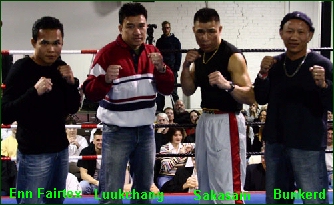 Before we end, lets not forget who was "In the House" in Utah Saturday night. Check out that photo at the right and you will see 4 Thai LEGENDS! Current IKF Pro Muay Thai World Champion Enn Fairtex of Fairtex San Francisco, Luukchang of Master Toddy's in Las Vegas, Bunkerd Faphimai (formally Fairtex) and of course, Sakasam who has done an Outstanding Job as head/chief Muaythai trainer at the MuayThai Institute of Kunponli. Talk about some talent in the ring!