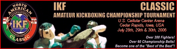 Fighters... It's time for us all to stop "Talking The Talk!" If you think you are the BEST Amateur Kickboxer in the World, It's time for you to come join us, and prove so to the WORLD as we all "WALK The WALK" at this coming years 2006 IKF North American (World) Classic Amateur Kickboxing Championship Tournament! We look forward to seeing you all there...
