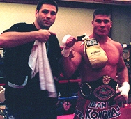Two time IKF Champion Rick "Savage" Cheek of Santa Rosa, California, USA has brought some very appreciated exposure to the IKF. Inside Kung writer Michael Afromowitz wrote a small feature in Cheek's in the magazine Muay Thai section of the magazine on page 85 of the May 2006 issue. The article focuses of Cheek's accomplishments as well as his upcoming visit to K-1 USA in Las Vegas as part of the events 8 man Tournament Bracket. So what did we like most about the article? Rick had a great photo wearing both his 2004 IKF North American Amateur Tournament Championship Belt and his IKF Amateur MTR California Super Heavyweight Title. Rick won his 2004 IKF North American Amateur Tournament title when he defeated Brian Wells of Cordova, Tennessee, USA by unanimous decision 30-27, 29-28 & 30-27. Cheek made it to the final after he defeated Bernard Settle Jr. by TKO at 1:03 of round 2. He won his IKF California Amateur title on March 26th, 2005 in Fairfield, California, USA when he defeated Ben Davis by KO at :50 seconds of round 1. Cheek also spoke highly of his trainer Billy Olsen. You can reach Rick or Billy at (707) 479-2198 or by e-mail at wolson22@aol.com |