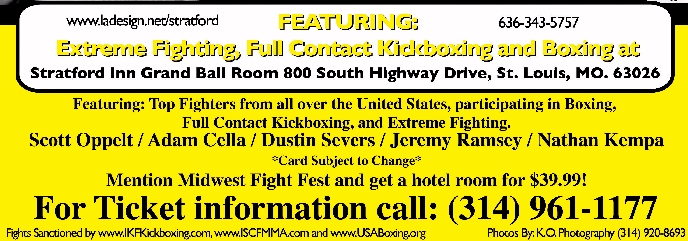 For More info contact Mr. Jesse Finney at (314) 608-3104 or by e-mail by clicking jesse@finneyskickboxing.com or see our website at www.ShamrockPromotionsLLC.com