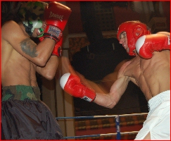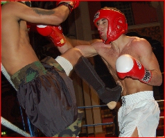 IKF Europe Press Officer The first fight in the ring was for the IKF Amateur Intercontinental Title. This would match-up 'Bad to the Bone' Tyler Price from North Carolina, USA followed by Kyle Harrison from Kirby Thai, England. After the crowd showed there respect to both athletes the battle commenced. The fighters rushed to take control of the centre of the ring, a strong left kick from Price sent Harrison flying rearwards towards the canvas. Price kept up the pressure during the early part of the round with relentless punches and some excellent high roundhouse kicks. Price trapped Harrison in his own corner with a barrage of none stop punches and kicks, with Harrison not defending himself and referee Mick Fowles had no option but to stop the fight in favor of the very talented American Tyler Price. Price wins the vacant IKF Intercontinental Title and proves to everyone he is a great prospect for future titles. The next fight was the defense of the IKF British Title held by Mattie Smith from Liverpool Martial Arts Studio. The challenger was Shaun McNabb from Kirby Thai Boxing. Straight from the bell Smith tried to stamp his authority with strong straight jabs and accurate low kicks. McNabb fought back taking the centre of the ring catching Smith with some high level kicks, Smith fought back his way by forcing McNabb into a neutral corner. An excellent round with both fighters giving there all. McNabb started the second strongly catching Smith with some stinging high shots. A good round for McNabb. The third started with Smith on the attack with all guns blazing. Smith had found his range connecting with almost every punch as McNabb fought back with some good kicking techniques trying to keep Smith at bay. A better round for Smith who was starting to take back control and setting the pace for the fight. The fourth was much more even as Smith seemed to step of the break, allowing McNabb a chance to advance and connect with some good punches, a strong jab from Smith shocked McNabb near the end of the round but he came to the fight and wasn't about to back down. As they started the fifth and final round, both fighters touched gloves and Mcnabb went straight on the offensive. He threw three straight kicks in succession, catching Smith. Smith responded forcing McNabb back onto the ropes. Now it was Smith doing all the chasing. Fast double jabs, and a high roundhouse kick caught Smith in the head. He retaliates with strong hooks forcing McNabb into his own corner. The last thirty seconds has them battling none stop with kicks and punches. An excellent fight appreciated by a knowledgeable crowd. The judges make the decision and the winner, and still, IKF British Champion is Mattie Smith from Liverpool. Top of the bill, the bout everyone has waited for. The quest for the vacant IKF Amateur International Rules World Title. Jamie Gilbert of Merseyside Kickboxing from Liverpool England. Gilbert is the current IKF English, British and European Champion. His opponent made the journey across the Atlantic from USA. He is Deejay Jones who is trained by Frank Price in North Carolina, America. Price is the 2005 IKF North American Classic Champion and the number 1 world contenders Before the bout, both national anthems were played as their countries flags were waved in their corners. The referee called both fighters into the center of the ring, they touched gloves and came out fighting. A world wind start from Jones as he sends Gilbert sprawling to the canvas with a swinging left hook. Gilbert is up quick with a strong body roundhouse kick and is dodged by Jones causing Gilberts legs to be trapped in the ropes, referee splits them up. Gilbert now starts to regain his composure catching the attacking Jones with some strong counter punches. Jones is stunned by a strong left hook and finds himself pinned in his own corner. A powerful front kick from Jones pushes Gilbert to the canvas again. At the bell Gilbert shakes Jones with a strong right cross. Round two Jones comes out on the offensive. Gilbert weathers the storm and starts to pick off Jones with sharp punches and low kicks. As the round continues Gilbert starts to dominate. Round three starts more sedate with Jones trying to press forward and Gilbert counting with effective counters. Gilbert continued on the attack with strong low kicks followed by strong hooks and a powerful right cross that forced Jones into his own corner. At this point it seemed to be all Gilbert now as he grows in confidence. As they met at center ring for the fifth and final round, both fighters shook hands and started the toe to toe action. Gilbert again scores with his counter attacking as he catches Jones with fast low kicks. Gilbert now doing the chasing kept Jones on his back foot. Gilbert's attack was now relentless as he kept forcing the pace and making Jones miss till the final bell. The decision was a unanimous win for the new IKF Amateur World Champion, Jamie Gilbert, 50-45, 50-45 and 49-46. Full respect to the challenger Deejay Jones for putting up such an excellent battle. A well entertained crowd leaves the stadium impressed by the quality of the IKF challenges. for more info on this event, please contact Mr. Alby Bimpson by e-mail by clicking alby@ikfkickboxing.com |
