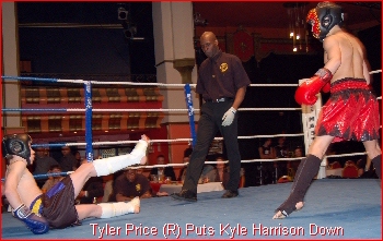 On the line will be the vacant IKF IR Junior Cruiserweight Intercontinental Title. Price's 13 year old son, Tyler Price (Right) won the 2005 IKF Junior Light Heavyweight (82.1 lbs. - 88 lbs. - 37.28 Kg - 40.00 Kg) North American tournament title when he defeated Jabari Rasheed of Durham, North Carolina, USA by split decision, 29-28, 30-27 & 29-28. With a record of 10-3/1 it was time for the 13 year old to step it up a bit.
