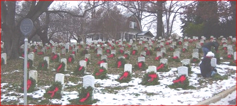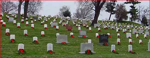 These wreaths -- some 5,000 -- are donated by the Worcester Wreath Co. www.worcesterwreath.com of Harrington, Maine. The owner, Merrill Worcester, not only provides the wreaths, but covers the trucking expense as well. He's done this since 1992. A wonderful guy. Also, most years, groups of Maine school kids combine an educational trip to DC with this event to help out. Making this even more remarkable is the fact that Harrington is in one the poorest parts of the state. 2006 will mark the 15th anniversary of holiday wreaths being sent from the State of Maine to Arlington National Cemetery. Each year the folks at Worcester Wreath Company make and decorate wreaths that will adorn over 5,000 headstones of our Nation's fallen heroes - in what has become an annual event coordinated with the Cemetery Administration and the Maine State Society. Row after row of bleached white stones, with evergreen wreaths and red bows it is a stirring image to commemorate those who made the ultimate sacrifice for our country. What started over 15 years ago, as one's man's dream to honor Veterans with Maine wreaths for the holidays, has become an annual event cherished by many. Humbled with a new understanding about the impact the Arlington Wreath Project has made, not only in honoring the dead, but recognizing the sacrifices of the living, Morrill Worcester - President of Worcester Wreath Company committed himself to doing more, by reaching out across the country. |