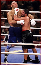 In any boxing club, sweat is part of the ambience, but in Russia, the sweat factor usually scores a one-two punch to the nose right from the doorway, reminding all who enter of what it smells like to be a nastoyashi muzhik, a real Russian man. On the wall of a small neighborhood boxing club in northwest Moscow, there is a huge, grainy photo of Stanislav Stepashkin, the 1964 Olympic featherweight champion who was one of Russia's early claims to international boxing fame, and a real Russian man if there ever was one. Stepashkin agreed two years ago to serve as president of the club, and the neighborhood boys here renamed it in his honor. These days, another photo hangs on the dank walls next to Stepashkin's, and while the picture isn't bigger, the man assuredly is: Nikolay Valuev, (43-0 with 31 wins by KO!) crowned in December as Russia's first World Boxing Assn. Heavyweight Champion. Valuev himself strode into the gym recently during his triumphant return to Russia after the title bout, in which he defeated American John Ruiz on a controversial decision in Berlin to become the tallest (7 feet) and heaviest (323 pounds) World Champion in history. He's so big he usually steps into the ring over the top rope so big that the adolescent pugilists at the Stepashkin Club would have barely been able to land a hook as high as his belly, if they had the nerve to try. Most just craned their necks and gawked, or melted into nervous grins. "I don't know about the world, but here in Russia, he's been very famous for a long time. For the kids here, this is such an emotional thing," said Alexei Barsukov, a former trainer who came back for the spread of iced tortes, fresh fruit and champagne laid out in the manager's office in Valuev's honor. In the rest of the world, Valuev, 32, is known as the "Beast from the East" (promoter Don King wants to call him "King Kong" when he defends his title in the U.S.), but in his homeland, he is more often known as the "Russian Giant." His brain is played up here as much as his brawn, a boxer who reads Tolstoy and writes poetry to his wife? - along with his diffident, quiet demeanor. "You can't impose your own manner of fighting on him, and that's because of his life position. He's very calm, and very, very controlled," Barsukov said. Added Vladimir Grachev, boxing coach at the club: "You have a person born with such a physique once in a hundred years. Such a build, and such an intellect Russia may not get another such man in our lifetimes." American Ruiz thought he had the fight won with his tactics of grabbing and jabbing a man 85 pounds heavier than his 238 pounds. He slipped in a few punches and tied up Valuev. But the judges' decision changed everything. While one judge scored the fight even at 114-114, the other two gave Valuev the edge at 116-113 and 116-114. Though the crowd booed, Valuev was thrilled at the judgment. "I had to wait 12 years for this and now it has happened," the 32-year-old Valuev said. "It's fantastic." Valuev only did real damage with one punch, in the final round no less, but it appeared to be enough. He caught Ruiz on the chin with a straight left that wobbled the champ. Ruiz clinched his way to the end of the fight. Valuev began landing jabs in the first round and started throwing combinations in the seventh. In the ninth, he even danced a bit. The big Russian improved to 43-0 with one no decision, while Ruiz's record dropped to 42-6-1. "Boxing is the only sport where you can get robbed without a gun," Ruiz said. "My promoter Don King should do his job and get a rematch." "The WBA world title belt doesn't fit around my