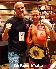 VS Otte With a packed house watching, it was a good thing they did because we have "NEVER" seen such an excited crowd in all our years of the sport! This was a back and forth battle as these two used up every bit of the 90 second rounds to give it their all. If there was ever any down time in the action, we must have missed it because these two gave a perfect example of the term, "Buzz Saw!" Rounds 1 and 2 were action packed but Nahe clearly had the edge winning them both 10-9. Rounds 3 and 4 were where we were glad we were not the judges. In these rounds it would not have surprised us if the judges gave them both to Otte which could have ended the bout in a draw. Unlike rounds 1 and 2, rounds 3 and 4 seemed to prove that Otte found a way to defend from Nahe's attack. Otte seemed to be blocking nearly everything Nahe was thrown her way, but in our opinion, she needed more on offense to sway the judges. All three judges gave Nahe round 3, and 2 of the 3 gave her round 4 as well. Although the scores read unanimous, this bout was without a doubt "MUCH CLOSER THAN THE SCORECARDS READ!" On the cards, Nahe took the win with a unanimous decision win, 39-37, 39-37 and 40-36. When all was said and done, this bout had "Rematch" written all over it. If so, it will be a first defense for Nahe's title she won on the scales and confirmed in the ring. However, knowing that the gold is on the line, and seeing that Otte finally found a way to defend Nahe's explosive attack by round 3, we may end up seeing just that little extra the judges needed to see from Otte to even the final score out. If there is a "Next Time", Otte might even take the IKF Gold from Nahe, but it's Gold that won't be easy to grab from the New Champion Nahe. Regardless of the outcome, if a rematch is made, this fight alone will be sure to PACK THE HOUSE!