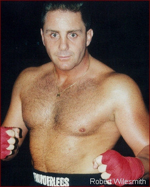of my ol rugby techniques." Clearly the headbutt was caused when Wilesmith's head leaned into Sheppard, however, days after the bout, Wilesmith had a different memory of the moment when giving an interview to the Australian media. "We clashed heads," Well, to begin with, Wilesmith is right on one account, it did look like he did it intentionally, but the "HE" was Wilesmith, NOT Mike Sheppard. As direct ringside eye witnesses of this bout we were pretty shocked to read this on the internet. Although an uneventful round, as the round came to an end, there was no question as to who won it. If not for the inexperience of one of the "Australian" judges (found later to be selected by Wilesmith) Sheppard would have won round 1 on all 3 judges cards, 10-9. However, the Wilesmith - Australian judges gave round 1 to Wilesmith, despite him only landing a few jabs, and we "Literally" mean a few, as in THREE. As round 2 started, Wilesmith's corner had stopped his head from bleeding so the fight was on again. However, as this round started, Sheppard realized he wasn't afraid of any "Thunderlegs" so he came out strong. Sheppard rocked Wilesmith with body shots and left - right combinations along with several kicks including a good head kick. To his credit, Wielsmith proved one thing, that he had a hard head but even a rock can take a strike, it doesn't express it has "Talent or Skill". As the round was closing out, Sheppard landed some bombs on Wilesmith that rocked him. Instead of covering up as most fighters would to protect themselves, Wilesmith smiled at Sheppard and actually waved him to come again. Wilesmith wanted everyone to "Think" he was having no problem taking Sheppard's blows, yet in reality, it was just the jesters of a fighter who had no answer to his opponent's offense. Saying that Wilesmith weathered Sheppards storm is not a compliment of skill... Having a hard head is not a compliment of skill... However, it's what Wilesmith kept doing which seemed to be the only things keeping him in the fight. As the round came to a close, this time there was no question as all three judges saw this round easily 10-9 for Sheppard. As round 3 started, Sheppard came out with no hesitation scoring punch after punch to Wilesmith's head and body. What many had hoped to be a tremendous fight quickly turned into a one sided frenzy or more so, the bushwhacking nearly everyone in Australia warned the IKF it would be! Sheppard was now landing shot after shot without any real resistance. Wilesmith would continue his only reply which was to smile back at Sheppard as if he wasn't hurt, but at ringside, the message was clear. Wilesmith was in PAIN!" From the corner prior to the 3rd round, Wilesmith was drained. Not only did he not have any answers to Sheppards attack, he had no gas ( endurance ) to even stand up to weather Sheppards shots anymore. Sheppard charged several times as Wilesmith just turned his back to him like a fledgling fighter who was just scared or had never fought in a real bout. It was clear this bout was coming to an end soon. As we past the 1 minute mark in round 3, Sheppard drove the bloodied and battered Wilesmith into his own corner. It was there that Wilesmith would turn his back again to try and escape Sheppard. After World Class Referee and former Champion Kickboxer himself, Dan Stell (Click here to read about Stell's experience) stopped Sheppard from his attack, the two squared up again. A few blows later and Wilesmith was leaning over. Sheppard could have very well landed several telling head shots, but almost as if he felt sorry for him, Sheppard choose to go to the body instead to finish Wilesmith off. Finally Wilesmith went down. Stell started the count, but Wilesmith would not make the count. This long awaited bout was over and Elizabeth, West Virginia, USA's Mike Sheppard would win the IKF World Title by KO at 1:33 of round 3. Sheppard improved to 23-10-1 with 17 wins by stoppage while Wilesmith adds a loss to his record, whatever that record is or was claimed to be. A loss that will likely be his last kickboxing bout. WHAT BOUT WERE YOU WATCHING? "Thunderlegs once again proving why he has that nickname as he destroyed Sheppard's legs." However, we had to ask what fight the writer was watching because Wilesmith's legs were no concern to Sheppard in this fight. Even Wilesmith's corner wondered why he never even turned his hips into any of his kicks. Maybe it was inexperience in the ring or fear of Sheppard countering? Who knows. What we do know is Wilesmith didn't throw "1" strong landing leg kick on Sheppard all night! NOT EVEN ONE! So to say Wilesmith "Destroyed" Sheppards legs comes from the eyes of a blind man. TRYING TO SAVE FACE... There's an article out there on the internet (CLICK HERE) that has some comments such as "but the loss of blood form the head gash and a broken nose took its toll." Bloodloss had NOTHING to do with this bouts outcome!! Sheppard simply beat Wilesmith down with shot after shot from rope to rope, corner to corner. Yes, Wilesmith was bleeding quite a bit, but to say the blood was "Gushing" is an over statement. We've seen a lot worse blood in some elbow cut Muay Thai fights for example. Along with this comment, Wilesmith has made quotes such as, "If it wasn't for the head clash, I reckon I would have won." Well, not sure what bout he was thinking about because after round 2 started, we saw this bout only going one way, Sheppard's! At age 47, Robert Glasson-Wilesmith got his shot. We will say that he "Walked the Walk" when he could have turned away. He took his criticism all the way to the ring. However, with comments like the ones we noted, we can only hope his ego does not overshadow his deserved pride. The only sad thing is how this bout is now being played out in the media with quotes from Wilesmith and writers who interviewed him saying, it was a "Tremendous fight" or an "Out right War" are FAR from the truth. This was no close bout. As we noted a