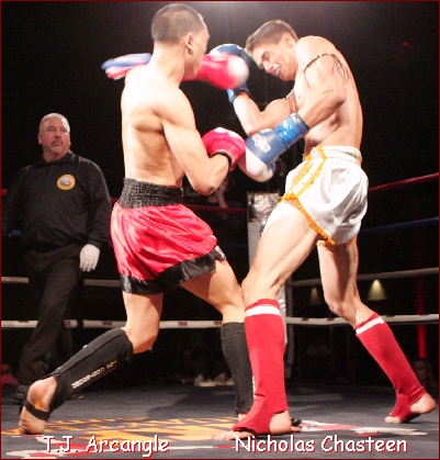 the IKF upset?" Kickboxing and Muay Thai was moving forward STRONG in 2004 and 2005, and we were all just steps from the most successful time of the sport. Then, a few let their egos get in the way, their pocketbooks and we all broke apart. Everyone wanted their own Sanctioning bodies, their own tournaments, their own Champions... We all lost sight of the big picture and we all paid the price... Within a year, MMA EXPLODED onto the scene as no other fight sport had. During this time, our ISCF MMA division Exploded as well. The IKF was still busy, but promoters we had built into icons of the sport decided they were so big, they didn't need IKF, as they believed they were bigger than everyone. There was no more TEAM in our sport. Kickboxing and Muay Thai was breaking apart and as the Stand-up Sports were fighting for position, MMA surpassed us without even a challenge... ALL of us allowed this to happen.... However, the question now is, how many of us can come back together and work to build this sport again? AK Promotions has been committed, as have some other promotions. However, we all need to work hard like AK Promotions has. We ALL as a whole need to bring our sport to a different level. We ALL need true, legit competition to make us better... WE ALL NEED DISCIPLINE! Those of you who are weak in your efforts, you will be offended by this article... However, those of you who are True Champions inside, TRUE Promoters inside, YOU will all realize that we all need to "Step UP!" If we stay where we are today, we will never get where we all want to be... The only question now is, WHO will really Step up?! This past weekends AK Promotions event STEPPED UP! AK Promotions wanted to give multi time junior Champion Katrina Nahe a TRUE Challenge for a TRUE World title. So, AK brought in a fighter that the IKF determined was the BEST Challenge for Nahe... Tisha Balentien who came in all the way from Almere, Holland. Balentien was no beginner. With a fight record of 34-5-1/11, she was ready to challenge Nahe for the vacant IKF Junior Girls Amateur Modified Muay Thai Bantamweight World Title... note... This was a "JUNIOR" Title! There was loads of hype prior to this bout and by the time these two took center stage, all that hype and smack talkin proved legit as both brought their A GAME to those Fight Fans in attendance. Although Nahe had far less experience record wise, her background in IKF Point Kickboxing proved helpful in her timing as well as targeting. While Nahe was scoring in the outside game, Balentien was racking up points while in the clinch with her knees. The two came out explosive in every round and each focused on their strong points. Balentien continued to win the inside knee battle, but it was Nahe who was winning the outside fight. By the time the fight ended, many thought it could go either way. Us at Ringside thought there would only be a point difference between the two. However, when the judges cards were tallied, only one judge saw it close like us. Judge Marshall Walker had it 48-47 while judges Ray Belowitz and Susan Thomas-Gitlin both had it 49-46. The winner, by unanimous decision was Katrina Nahe. Prior to the Tisha Balentien - Katrina Nahe Title bout, Alec Gonzales of California (7-1) and Travis Clay of Arizona (5-2) met up for the vacant IKF Amateur "Full" Muay Thai Rules Western United States Lightweight Title. This was by far one of the most exciting bouts of the night. Gonzales and Clay went hard and fast for all 5 rounds and the scores alone do not express how close these two were. in the end, Judge Martin Sammon and Susan Thomas-Gitlin had it 49-46 while Judge Marshall Walker had it 48-47, all 3 for the new Champion Alec Gonzales by unanimous decision. The nights main event was a Title Defense. T.J. Arcangle of San Francisco, California (12-1) has won several IKF titles. He had won the IKF Amateur Modified Muay Thai Light Welterweight World Title on October 8th, 2011 on another AK Promotions event in this very same venue in Oakland, California, USA. In the bout, he faced top contender John Hamm of Calgary, Alberta, Canada (22-12/9). After 5 rounds of some of the best fighting techniques we had ever seen Arcangle produce he defeated Hamm by unanimous decision, 50-44, 49-45 and 49-45. For his defense, he would need to take on another top contender, Nicholas Chasteen of Tempe Arizona (16-3/6) Well before the bell rang, Arcangle knew he had his work cut out for him as his 141 pound contender also had a good 3 inches of height to his advantage. Chasteen stepped up to the scales at 6'1" to Arcangle's 5'8". Seeing this we wondered how Arcangle's game plan would battle the taller Chasteen. From the opening bell, we must say that it often appeared as though Chasteen was the aggressor. Although lean and tall, it was clear that his slender physic was packed with plenty of explosive muscle. However, it also seemed that although Chasteen was agressive, Arcangle was blocking most of his shots and getting off some effective counters. Throughout all 5 rounds, Arcangle never appeared to be the aggressor. He simply remained patient and waited for Chasteen to attack. Chasteen seemed to always be the one to engage, but once he did, Arcangle would slip, move and counter. It was a well planned strategy against the taller Chasteen that seemed to be working. In the end, two of the three judges agrees as Judge Susan Thomas-Gitlin and Marshall Walker scored it 49-46 Arcangle and Judge Ray Belowitz scored it 48-47 Chasteen. Arcangle keeps his title on this night, but like the Balentien - Nahe title bout, we wouldn't mind seeing these two go toe to toe again. Here is the nights full round-up and bout stats.