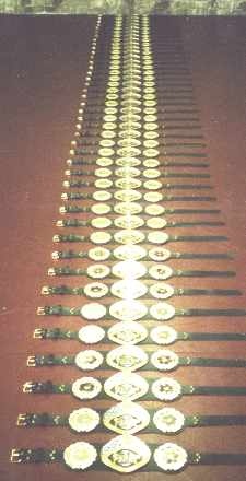 The deadline has come and it's now official everyone. A total of *218 USA Amateur Kickboxers will "Walk The Walk" on September 7th, 8th and 9th at the 2001 IKF/RINGSIDE USA National Amateur Championships. To see who they are, click HERE. (*) The number of registered fighters may increase a bit since we had previously approved some North East region teams to register by Friday, August 10th. However, for the most part, this years event will have over 100 more participants than last year and is sure to be the greatest ever. Shown above is this years 2001 National Championship Belt medallion designed by Toni Foster of Foster Graphics, the official graphics company of the IKF. However, there may be another name added to it from what we're being told... That is, if all goes well next week... We'll see... If you notice, there are 12 Stars on the medallion which brings us to our first National Amateur Tournament Trivia question...... "What do the 12 Stars Represent?" 3:13 PM,