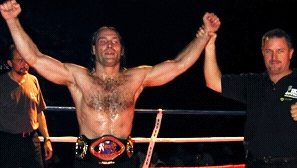 Atlanta, Georgia, USA: It was a late night in Georgia when the main event took center stage. It was 1:AM Eastern Time. However it would be the final touch of a FULL HOUSE/SELLOUT event that had already seen 12 great bouts in Full Contact Rules, International Rules, MuayThai Rules and ISCF Mixed Martial Arts at the Atlanta Brewing Company in Atlanta Georgia. Nothing is better than a sellout other than great bouts, which is exactly what the full house crowd witnessed... This event had EXCITMENT! Atlanta Georgia, USA Promoter Lane Collyer had stepped back from his familiar position of "Event Promoter" so he could fight on this event, putting this job title into the hands of his Sukotai Inc. partner, Ron Gaiteri (Right). The night was a MAJOR Success for all involved which included the events major sponsors Spondivits Food & Spirits of Atlanta, Georgia (who has the greatest seafood we've ever tasted!!!) and the Atlanta Brewing Company (Venue sponsor) located in Midtown Atlanta, Georgia. It was a first class event that featured great seafood and hamburgers catered by Spondivits and free Microbrewery Beer for all those of age from theAtlanta Brewing Company (except officials of course...) and of course, a lot of great fight action!! It was truly a night of Fights, Food and Spirits. As we said, the main event had to wait until after midnight, but it was worth it all as Goutiar, Mississippi's #13 ranked (IKF Pro MuayThai Division) "BIG" John Dixon (245, 18-1/18) and #11 ranked (IKF Pro MuayThai Division) "Lightning" Lane Collyer (Left, 18-3/11, Atlanta Georgia) stepped into the ring to contend for the vacant IKF Pro MuayThai Rules Super Heavyweight United States Title. Although Collyer's had all of his ring success in the Heavyweight division, (Under 210 lbs) he wanted to move up in weight to the Super Heavyweight division, (Above 209.1 lbs.). At the weigh-ins, Collyer barely made the minimum weight for the Super Heavyweight Pro MuayThai Rules Division, weighing in at only 209.5 lbs. On the other side of the ring, Dixon was a true Super Heavyweight weighing in at an even 245 as planned. If Dixon's record wasn't intimidating enough, his size was. However, when the two stepped into the ring, it was clear to everyone that Collyer was a lean 210 lbs while Dixon looked a bit soft around the middle. To most, it would appear that the big man may get winded early, but who knows in the fight game. We all know Dixon didn't get here by being winded early and losing. With only 1 loss in his 17 kickboxing bouts of which all 17 were won by TKO/KO, Dixon was here because he's a winner, as was Collyer. Better yet, when the fighters are this big, anything can happen... Here's the round by round action of the main event.... ROUND 1 ROUND 2