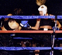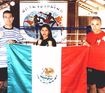 IKF MuayThai Rules Super Middleweight Mexico Champion, Adolfo Lozano (Far right in picture and below) of Puerta Vallarta, Jalisco, Mexico is currently in Thailand doing some intense training. Lozano and his wife Elizabeth will be in Thailand until January visiting several MuayThai camps and getting in some great training. He's hoping his trainingh will come in handy for a possible shot at the IKF North American Title sometime in the spring of 2001. Lozano won his Mexico title back on October 6th in Puerta Vallarta, Jalisco, Mexico. After 4 rounds, his opponent, Enrique Cuellar was well ahead and on his way to the title leading 39-36, 38-36 and 40-38. In the corner, Lozano's trainer asked him to lay on his back so he could lift his legs. However it appeared to many that he had past out instead which prompted the ringside doctor and other officials to come to his corner in preparation to put a stop to the bout. Lozano was told to either sit on his corner stool or stand up or the bout would be stopped. He quickly stood and looked out into the crowd as the chant begin, "Yes You Can, Yes You Can." Over and over again. Down on all the judges cards entering the final round, what happened next can only be called a miricle of will... Lozano came out in round 5 as if he was fighting in round 1. Although noticeably tired, his punches regained some snap and power and his legs were snapping up with speed and power once again. More importantly, the one strike that won him rounds 1 and 2 so easily was back with incredible accuracy, his knee strikes. Over and over again Lozano landed knees on Cuellar who was still strong with his own knees and hands. Then as the 2 came to a clinch, Lozano, out of nowhere, EXPLODED with energy and opened up a non stop attack on Cuellar. Starting with kicks and punches and moving into the clinch, Lozano backed away and let loose with several strong knees that hit Cuellar in the body and finally the ending 2 had direct hits on their target, Cuellar's face. As the 3rd strike ended and Cuellar's head pulled back, blood shot from his nose forcing referee Ubillado Vega to step in. A wise move as it was clear, Lozano was on a roll and had no plans of stopping. Upon closer look, Vego saw the tremendous blood flow from Cuellar's nose and immediately stopped the bout. The ringside doctor later said if Vega didn't stop it, he would of since it seemed to take him a long time to stop the blood flow. At 2:05 of round 4, Lozano had rose up from the strength of his fans and found the energy to win the title against Enrique Cuellar. Lozano later told us that when he stood up during the round 4 and 5 break, he saw his mother and father in the crowd and the look on their faces seemed to motivate him to dig down deep and find the strength to carry on and win. However, as he seemed to look to the heavens and ask if he could do it, almost as if it were planned, his true fans, those who were still there, started chanting back, "Yes You Can", Yes You Can!" And "CAN" he did. It was clearly one of the most memorable moments in IKF Title history to witness such a comeback of a fighter. |