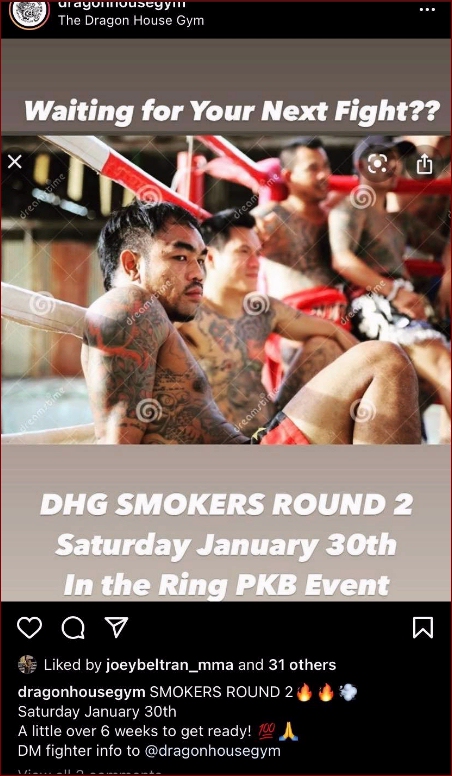 event posted on Facebook: Higgins also followed his defense with: CLARITY FROM THE IKF Daniel Higgins' past event that was indeed an unsanctioned illegal event was going to be for the better part, ignored. That was, until the IKF saw that he was actually going to do another unsanctioned illegal event and this time, he used the "PKB" letters to advertise that event. ANY and ALL events in California using the term Kickboxing and or Muay Thai and done in a boxing ring is required to be sanctioned through the IKF / CSAC - California State Athletic Commission. ( CAMO MMA if a full contact sport is done in a cage - USA Boxing if a Boxing event). EVERY qualified trainer in California knows this.
