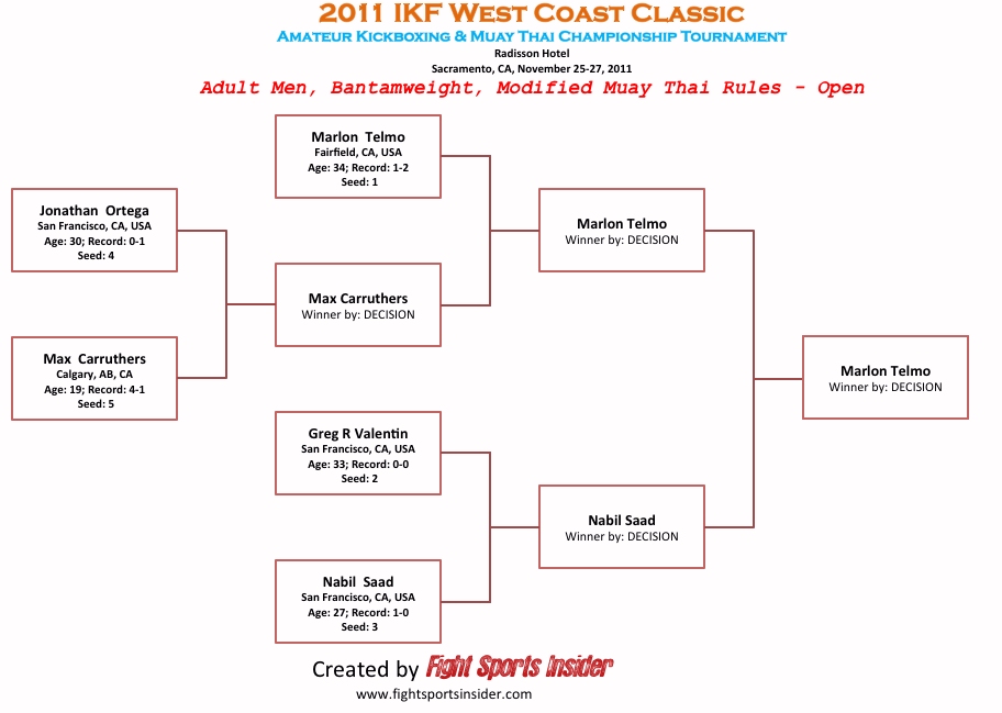 - Saxon Vaughan defeated Mark Climaco Fremont, California,